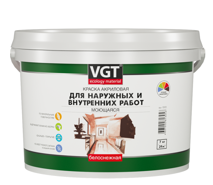 Краска ВД-АК-1180 для наружных и внутренних работ моющаяся «Белоснежная»